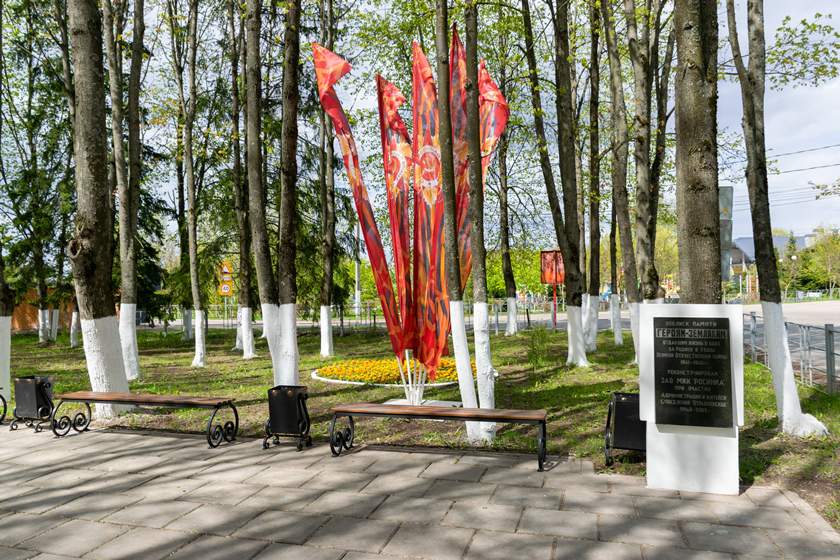 Расширена и благоустроена площадка вокруг памятника, ее окружают деревья.