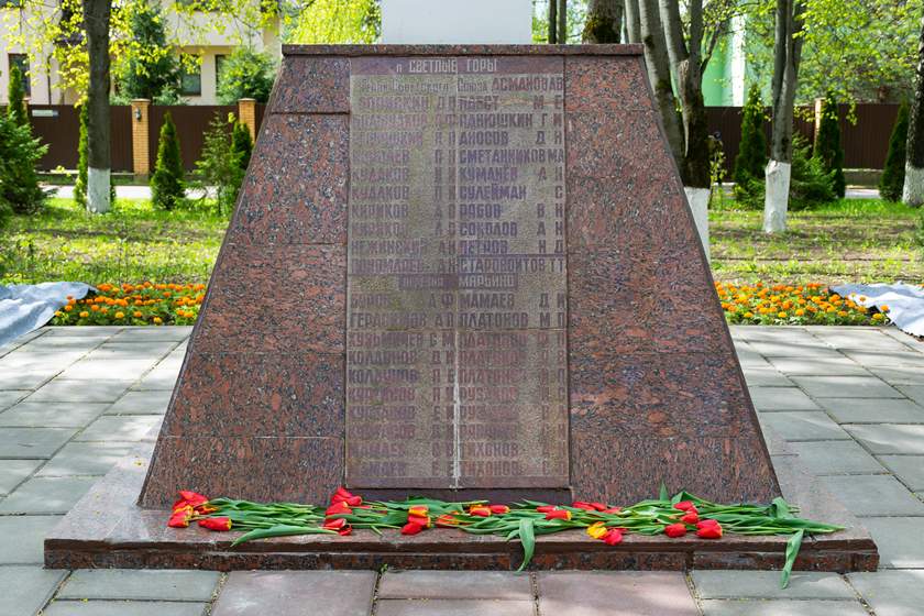 На плитах полностью реконструированной нижней части памятника выбиты фамилии 34 жителей Ангелова и Марьина, отдавших жизнь за Родину.