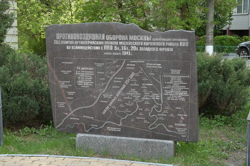 Перед 65-летием Победы, в 2010 году, на мемориале установили мраморную плиту с изображением плана-схемы противовоздушной обороны Москвы северо-западного направления 25-го ЗАП Московского корпусного района ПВО. В центре мемориала на круглом постаменте установлена антенна радиолокационной станции.