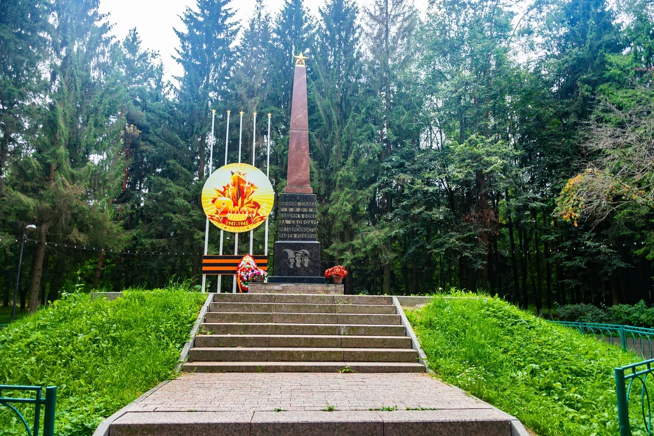 Обелиск, на вершине которого золотая пятиконечная звезда, установлен в 1973-1974 годах в центре парка на пригорке в память о героях, павших за свободу и независимость нашей Родины. На памятнике увековечены имена 67 жителей, погибших на фронтах Великой Отечественной войны.